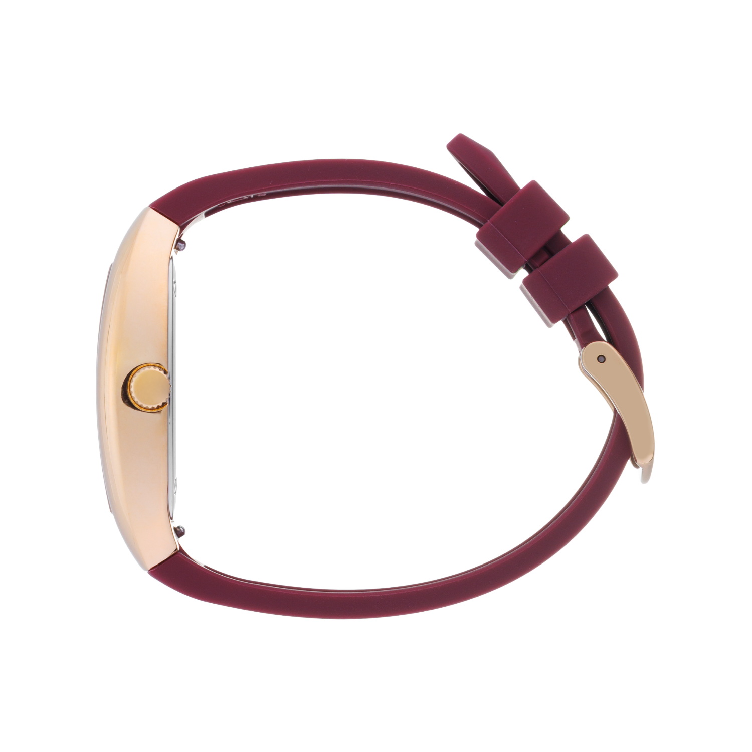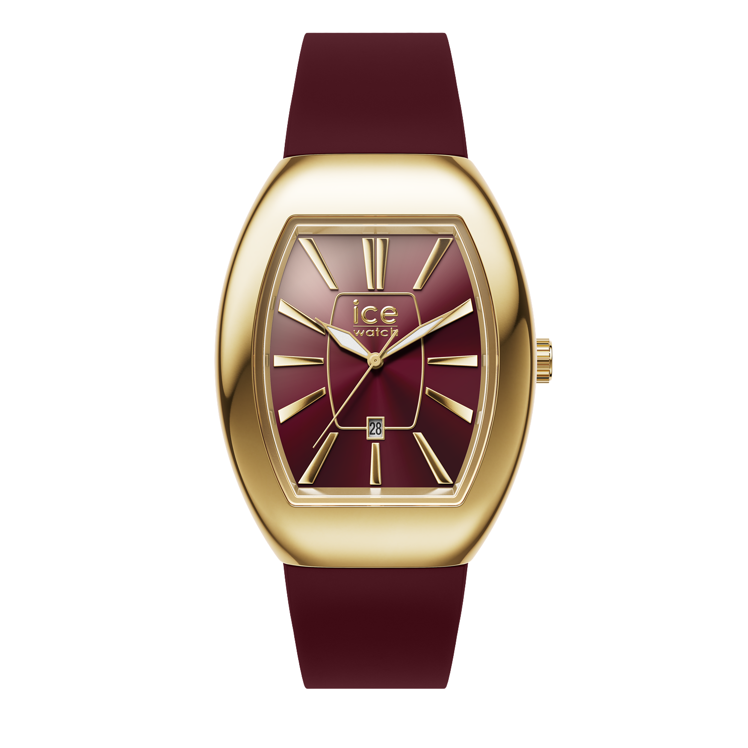 Elevate your style with the ICE Boliday Dome Metal Cherry watch. Featuring a rich cherry-colored strap and a sleek gold-tone dome-shaped case, this timepiece blends boldness with elegance. The striking gold dial with minimalist markers adds a refined touch, making it the perfect accessory to enhance your look with sophistication and a modern edge.